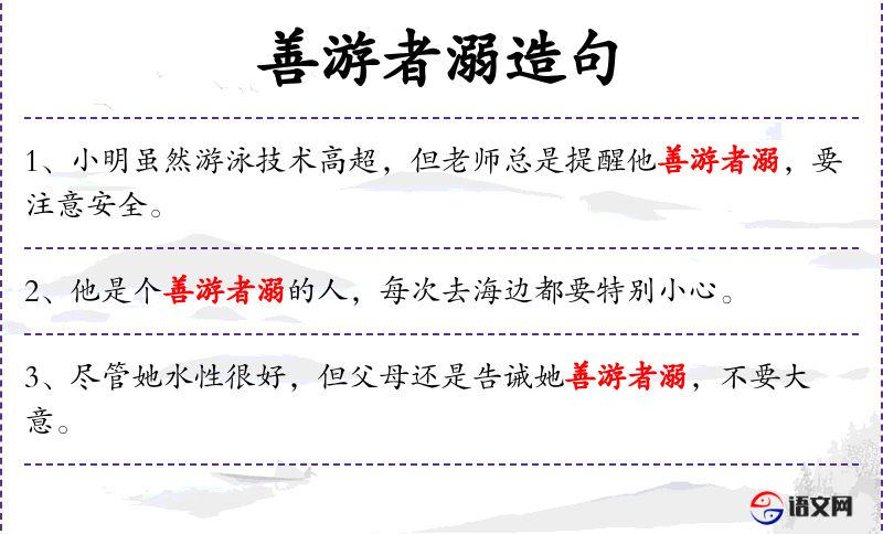 句子:“尽管她在水中如鱼得水,但家人总是提醒她善游者溺,安全第一。”