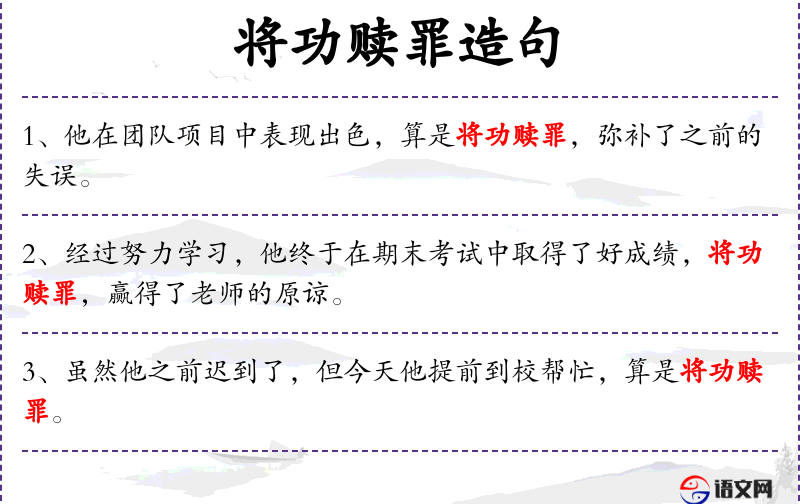 - “将功赎罪”是一个成语,源自**传统文化,强调通过积极的行动来弥补过去的错误。