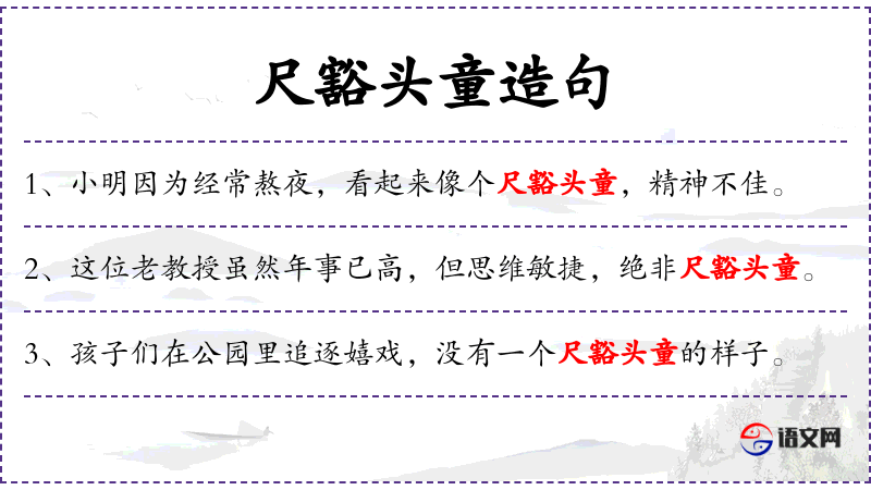 - 尺豁头童的影子:比喻年轻时的不成熟或不足之处。