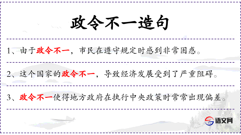 - 政令不一:指的是政府发布的命令或政策不一致,可能有多个版本或解释。