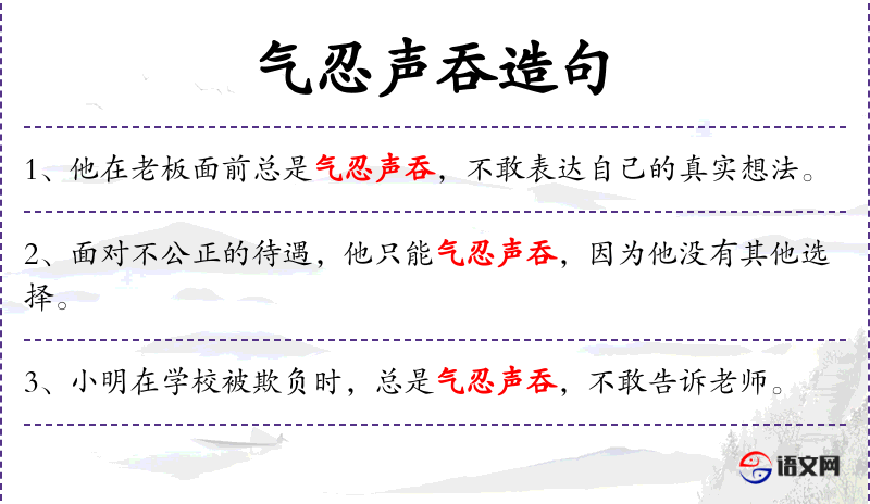 4. 【气忍声吞】 - 受了气而勉强忍耐,不说什么话。形容窝囊。