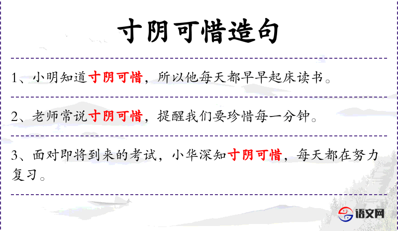 - 宾语:寸阴可惜,提醒我们要珍惜每一分钟