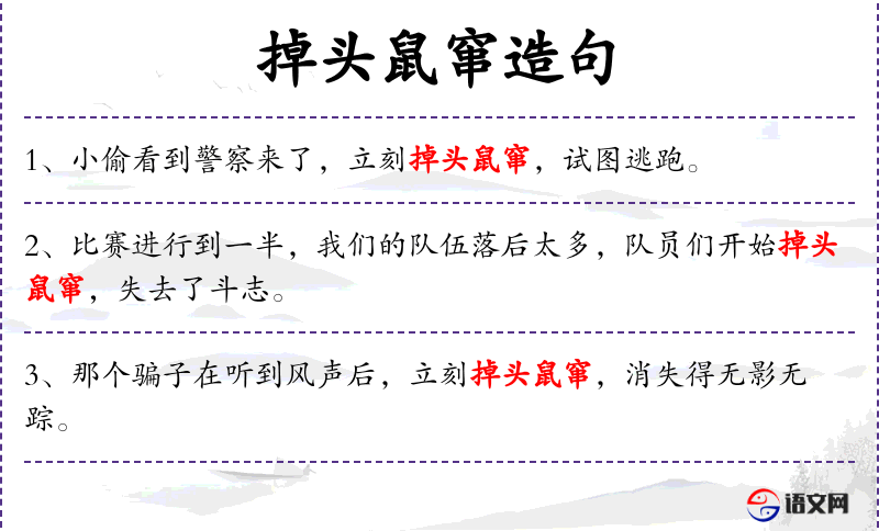 - 鼠窜:动词短语,比喻像老鼠一样慌张逃跑。