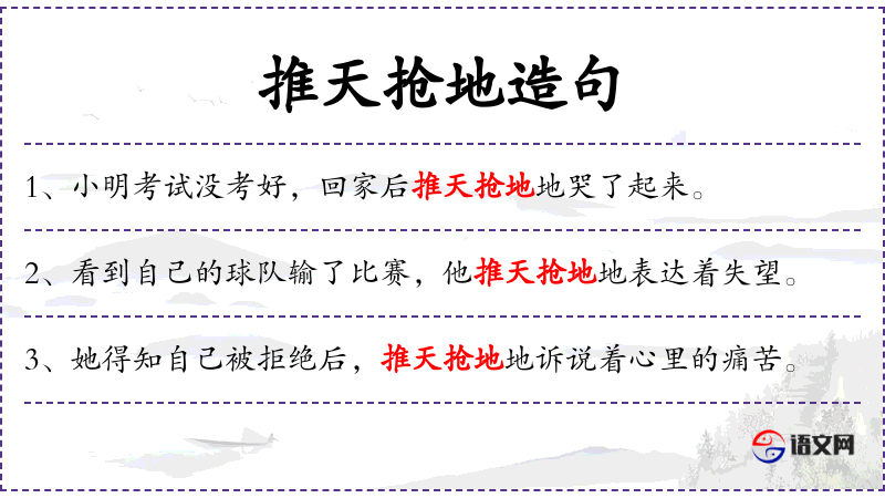 - 推天抢地地:形容表演非常激烈、投入。