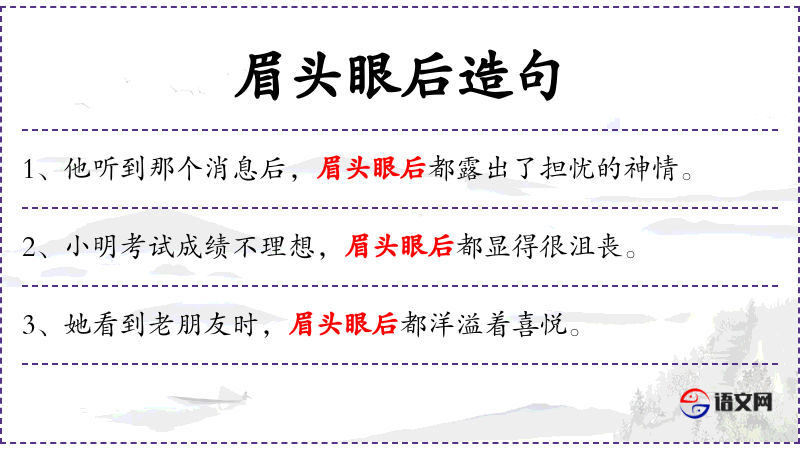 3. 【眉头眼后】 - 指眉眼间的神色。