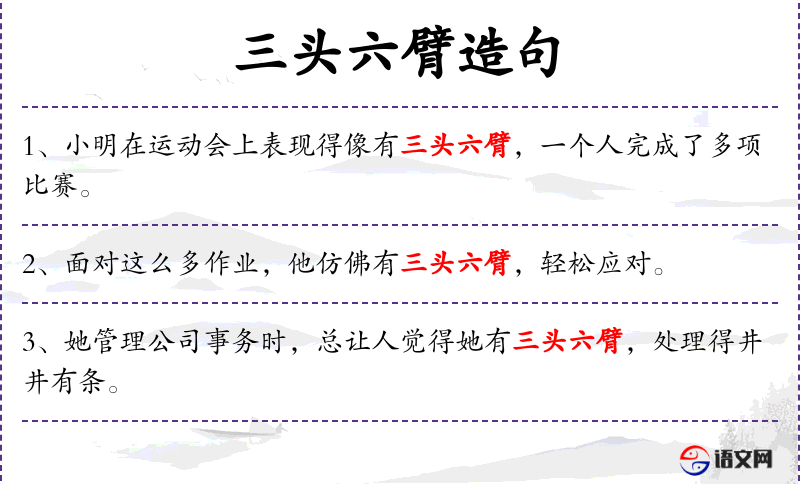 1. 【三头六臂】 三个脑袋,六条胳臂。原为佛家语,指佛的法相。后比喻神奇的本领。