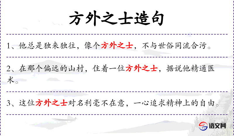 - 方外之士:在**文化中,方外之士通常指那些超脱世俗、追求精神自由的人,如道士、隐士等。