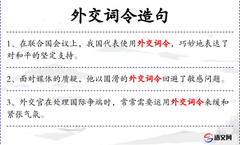 - 外交词令:指在外交场合中使用的特定语言和表达方式。