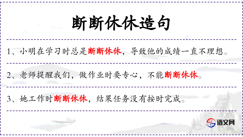 - 原句:她弹钢琴时断断休休,听起来很不连贯。