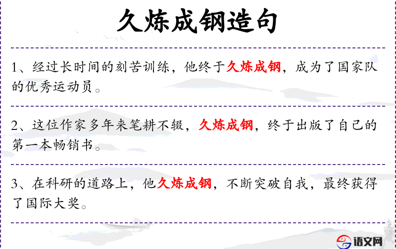 久炼成钢这个成语源自**传统文化,比喻经过长时间的锻炼和磨砺,最终达到极高的水平或境界。这个成语强调了坚持和毅力的重要性。