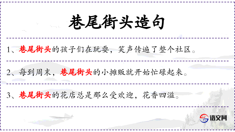 - 巷尾街头:指街道的末端或角落,常用来形容位置的边缘或不显眼的地方。