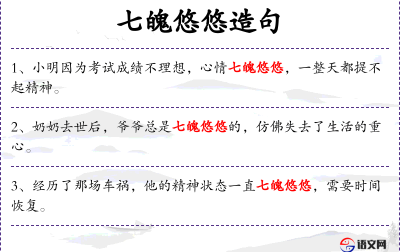- 七魄悠悠:形容精神恍惚,心神不定。