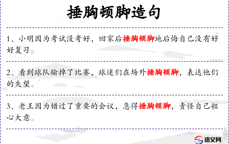 • 考试没考好,小明回家后后悔不已,捶胸顿脚。