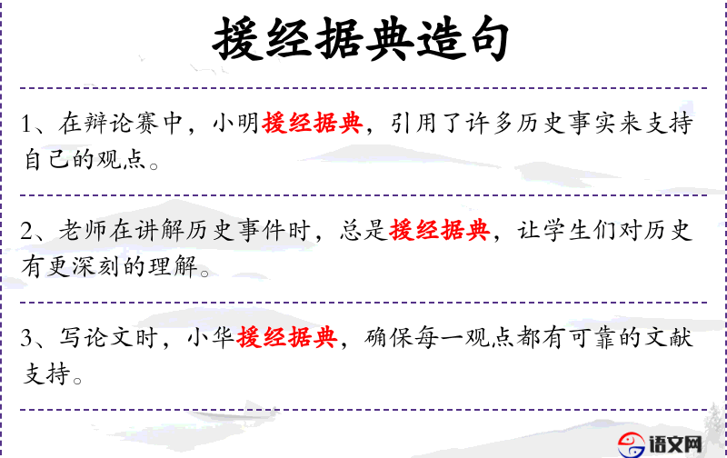 - 援经据典:引用经典和典籍中的内容来支持自己的论点。