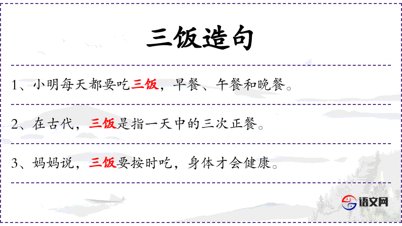 1. 【三饭】 谓第三次用餐; 古时以乐佐食之乐师。