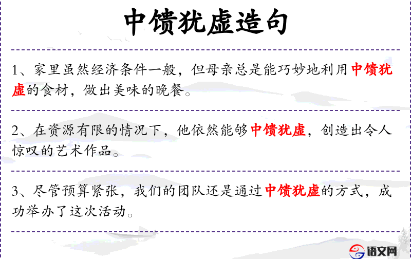 - 在物资短缺的时代,人们掌握了中馈犹虚的技巧,以最大限度地利用资源来维持生存。