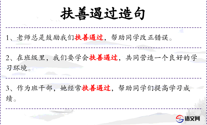 句子:“[老师教导我们要有扶善遏过的精神,这样才能促进集体的和谐。]”