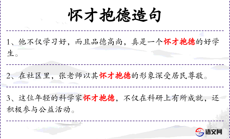 句子中的“怀才抱德”是一个成语,源自传统文化,强调才能与德行并重。在文化中,这样的形象通常会受到人们的尊敬和推崇。