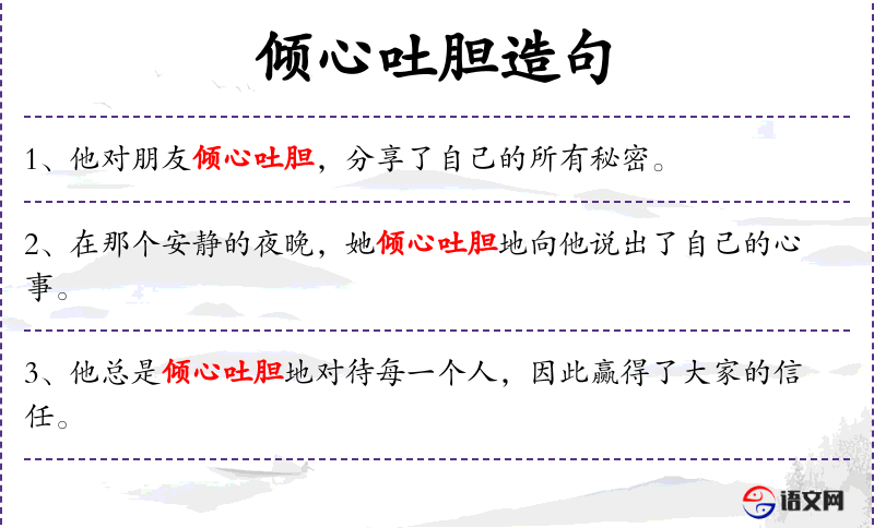 - 礼貌用语:“倾心吐胆”表达了一种真诚和尊重的态度。