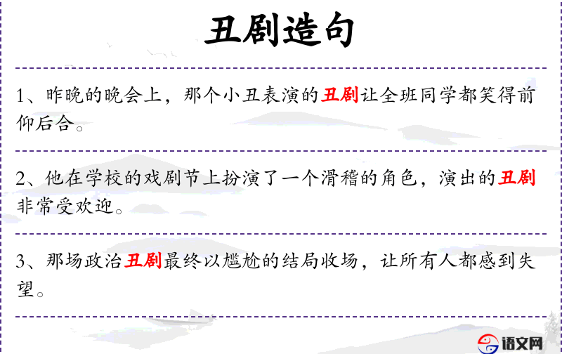 2. 【丑剧】 - 指有戏剧性的丑恶事情。