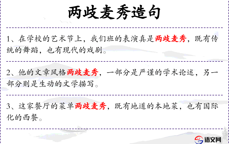 句子在实际交流中用于赞美某个班级的表演,表达了对表演多样性和创新性的赞赏。使用“两歧麦秀”这个成语,增加了语言的文雅和深度。