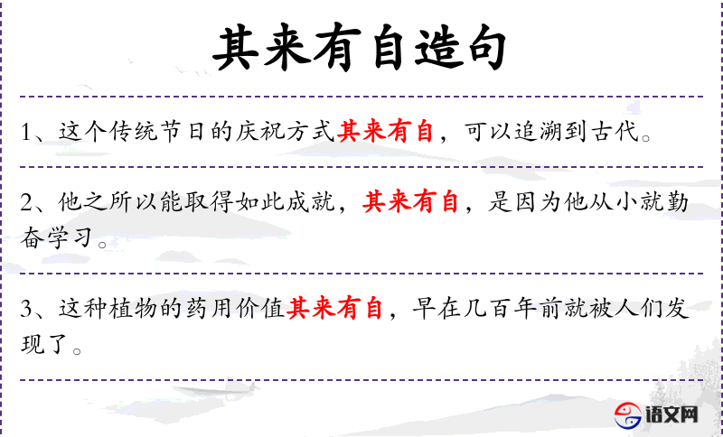 1. 【其来有自】 自:从……出来的地方。指事情的发生、发展有其来由,并非偶然。