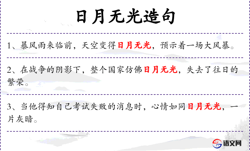 - 英文翻译:使用了“cast a shadow”和“as dark as a sunless day”来表达“日月无光”的意境。