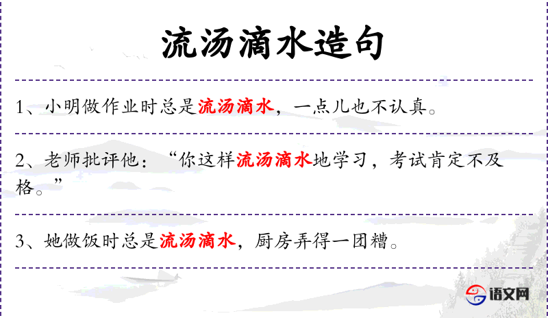 小明做作业时总是流汤滴水,一点儿也不认真。