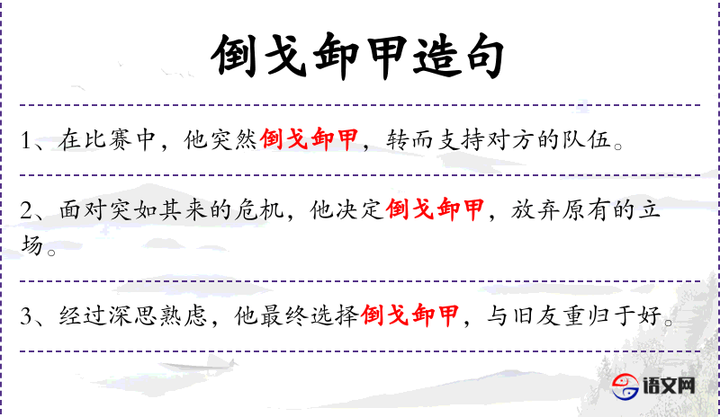 • 倒戈卸甲:比喻改变立场,放弃原来的立场或利益,转而支持对方。