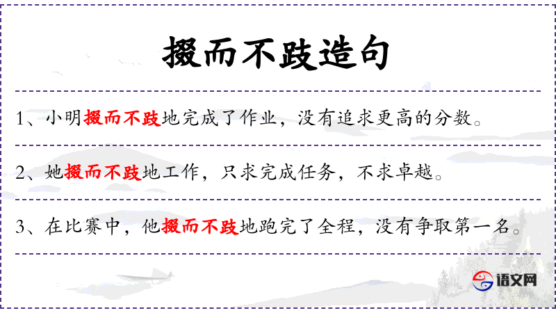 句子:“小明掇而不跂地完成了作业,没有追求更高的分数。”