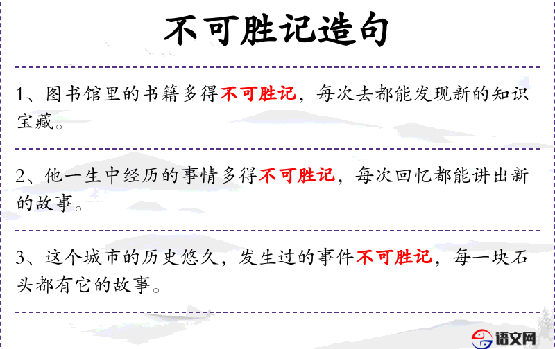 - 多得不可胜记:形容数量非常多,多到无法一一记数。