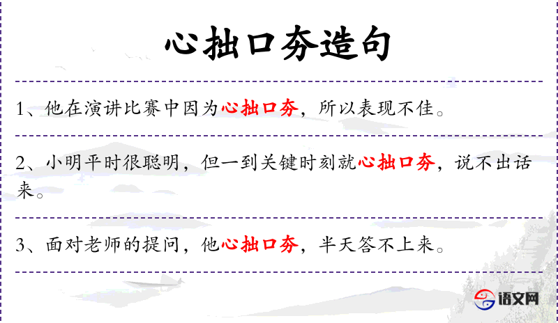 句子:“在全班同学面前,他心拙口夯,没能很好地完成任务。”