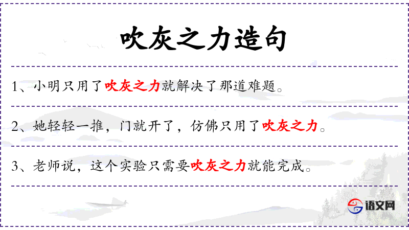 “吹灰之力”是一个成语,源自古代对灰尘的轻视,比喻事情非常容易完成。这个成语体现了人对简洁、高效行为的赞赏。