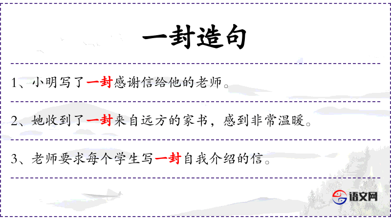 1. 【一封】 - 古以十万平方里为"一封"; 指单峰(驼); 表数量。用于书信等封缄之物。