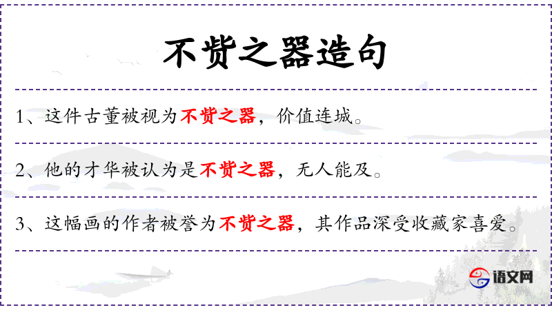 1. 【不赀之器】 - 赀:估量;器:才能。不可估量的才能。形容人很有才能。