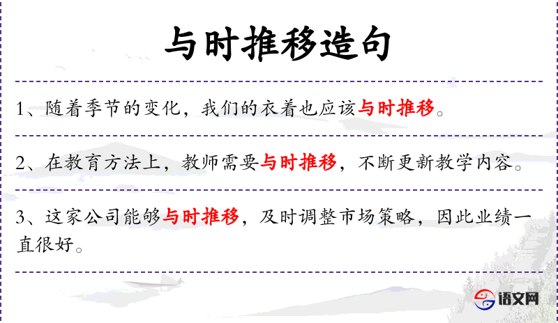 1. 【与时推移】 - 随着世道的变化而变化以合时宜。