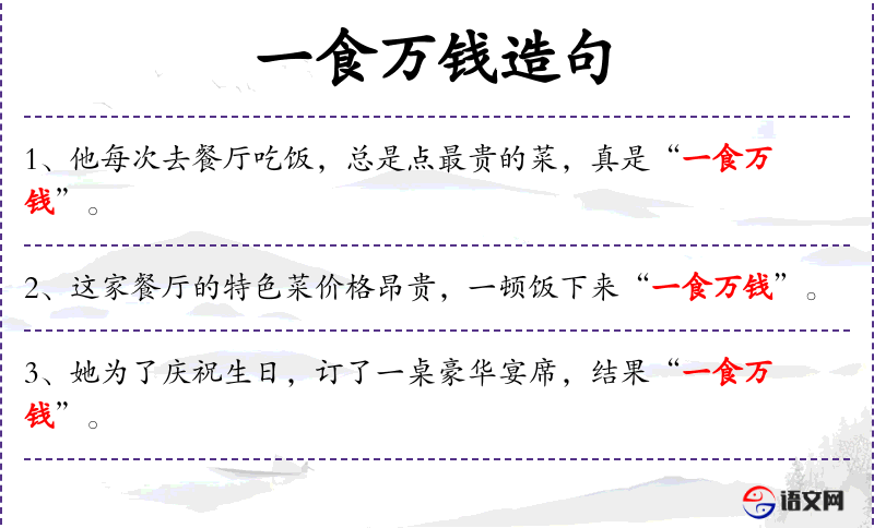 一食万钱造句