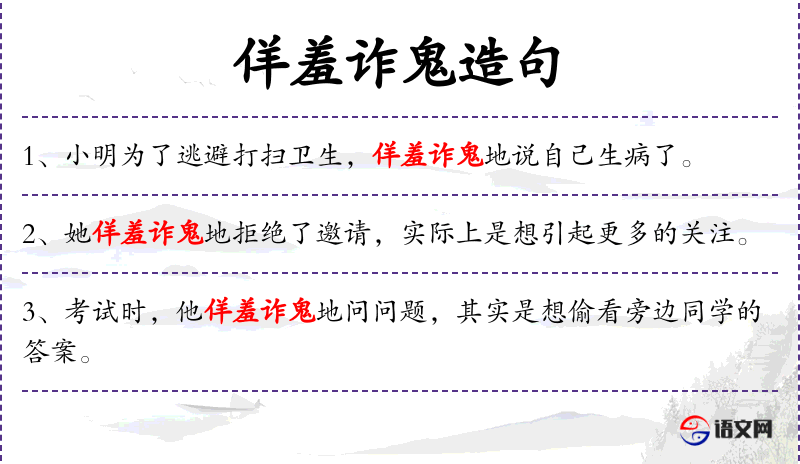 - 佯羞诈鬼:假装害羞和狡猾,形容人表面上装作不想要,实际上内心渴望。