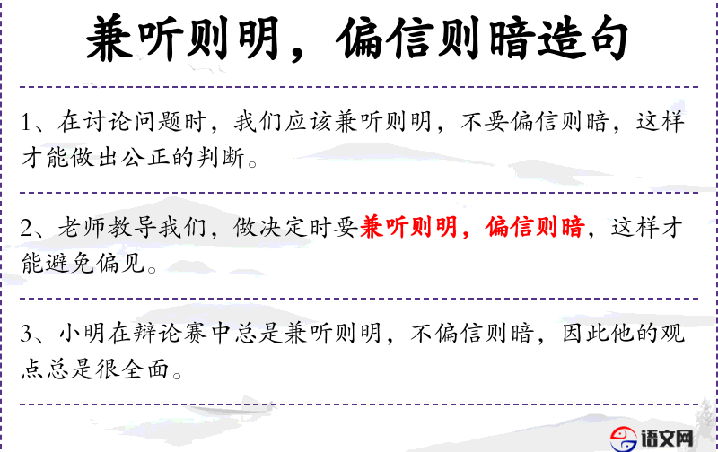 - 兼听则明:意味着广泛听取不同意见可以使人明智。