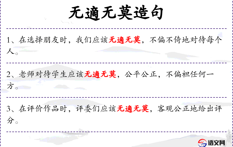 - 无適无莫:没有偏袒,没有歧视。