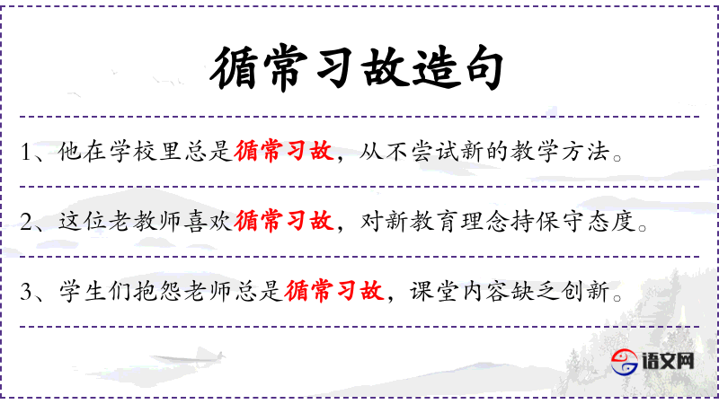 句子:“这位教授虽然学识渊博,但过于循常*故,缺乏创新精神。”