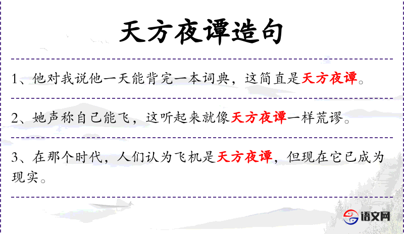 - 天方夜谭:成语,比喻不可能或难以置信的事情。
