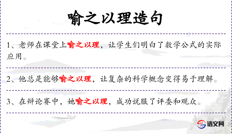- 相关成语:喻之以理(用道理来说明)