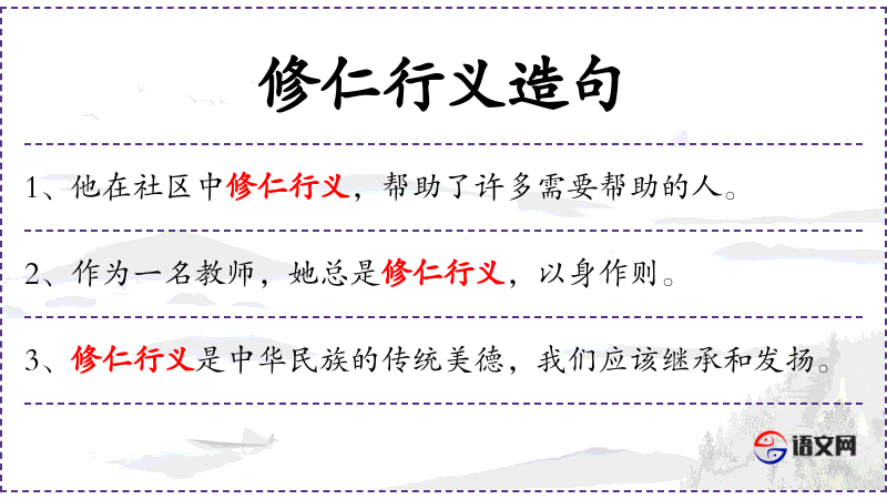 1. 【修仁行义】 修:培养;行:推行。建立爱民的仁政,推行正义的的措施。