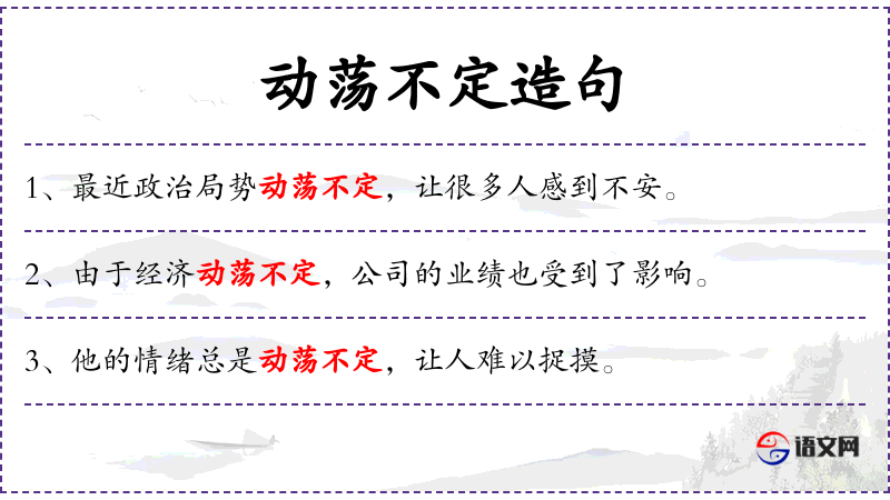 - 相关成语:“风雨飘摇”可以用来形容类似的不稳定状态。