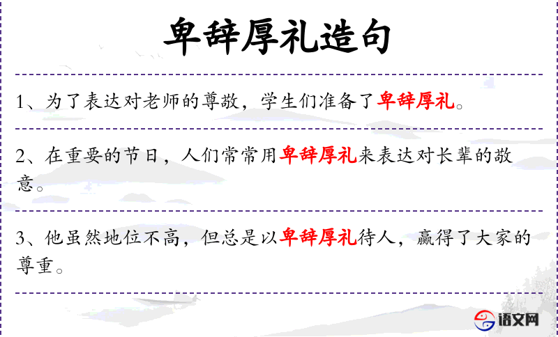 - 古代外交场合中,卑辞厚礼是一种常见的礼仪。