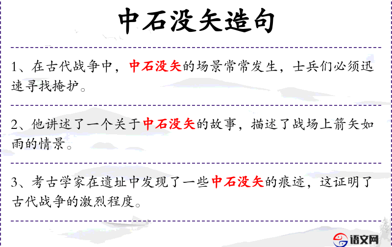 - 宾语:一个关于中石没矢的故事、战场上箭矢如雨的情景