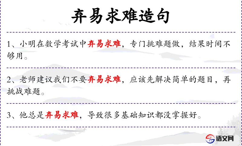 - 弃易求难:表示放弃简单的事情去追求困难的事情