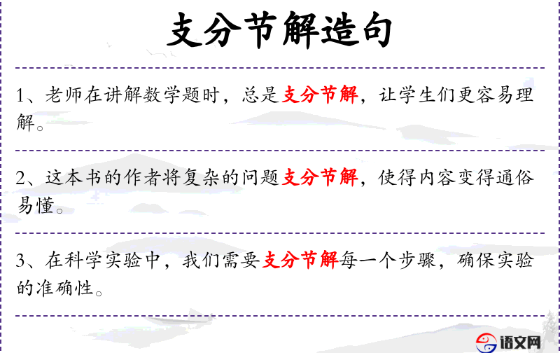 - 支分节解:指详细分解和解释,使复杂的事物变得简单易懂。