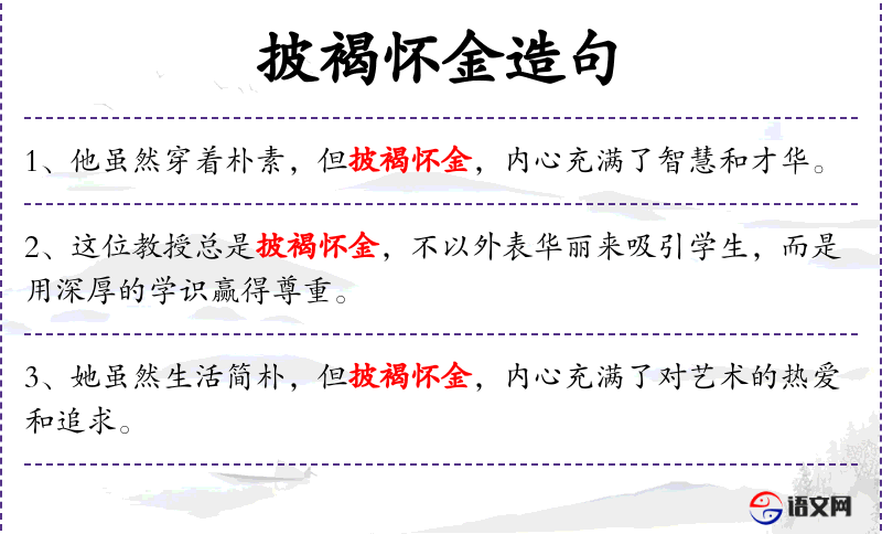 - 文化意义:“披褐怀金”体现了**传统文化中对内在品质的重视。